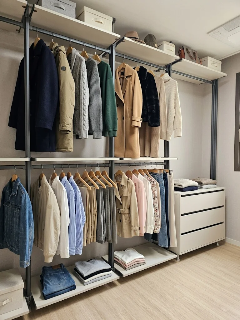 ✔️ 1단 옷봉: 코트, 원피스, 롱패딩 (긴 옷)