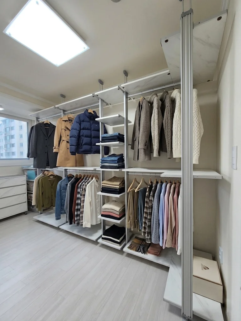 ✔️ STEP 1에서 내린 옷 → 눈높이 옷봉/선반에 배치