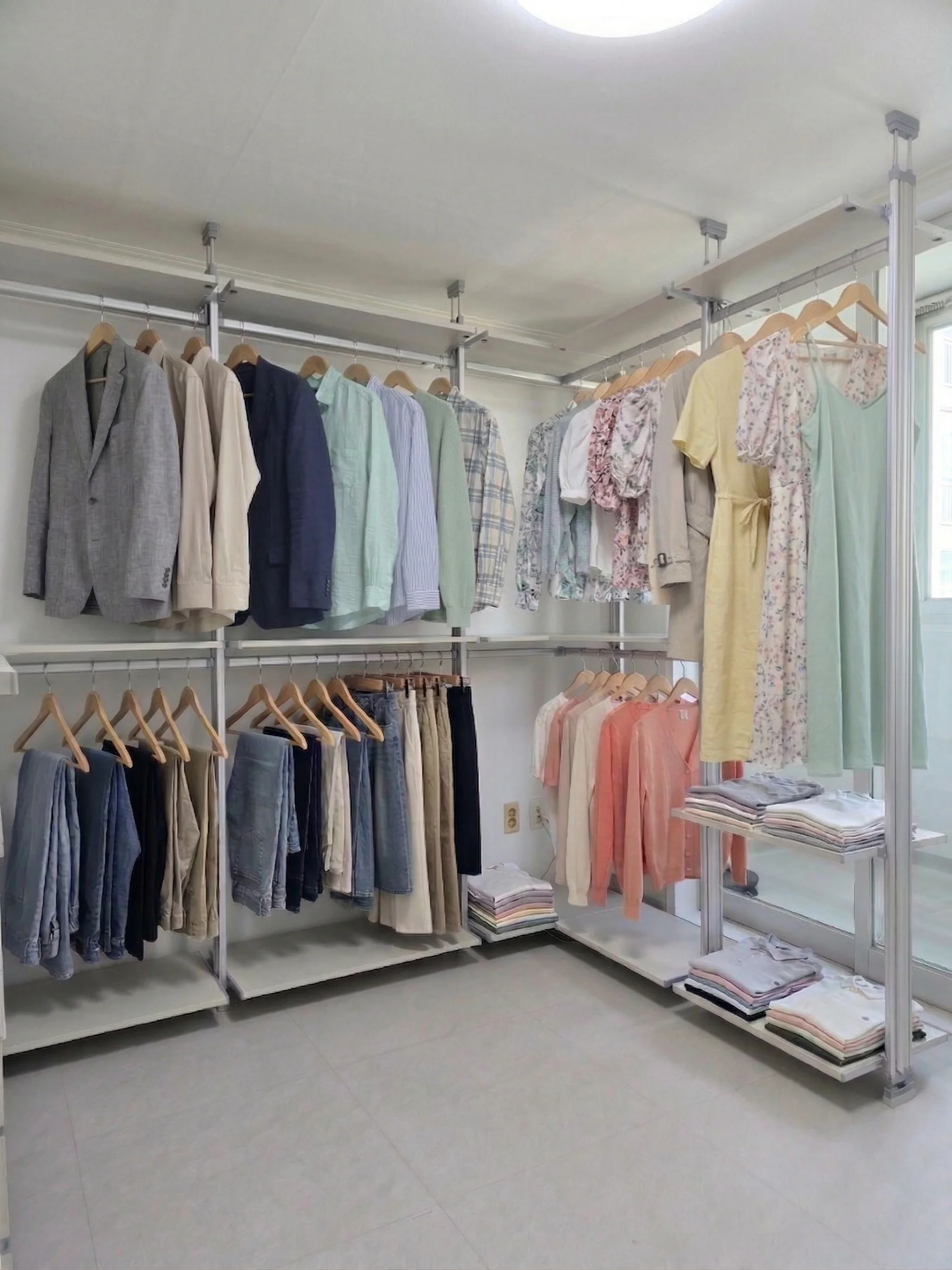 ✔️ 롱/맥시 원피스도 바닥에 안 닿음 ✔️ 천장 높이까지 활용 ✔️ 코트, 롱 가디건도 함께 ✔️ 긴 옷 전용 구역 만들기