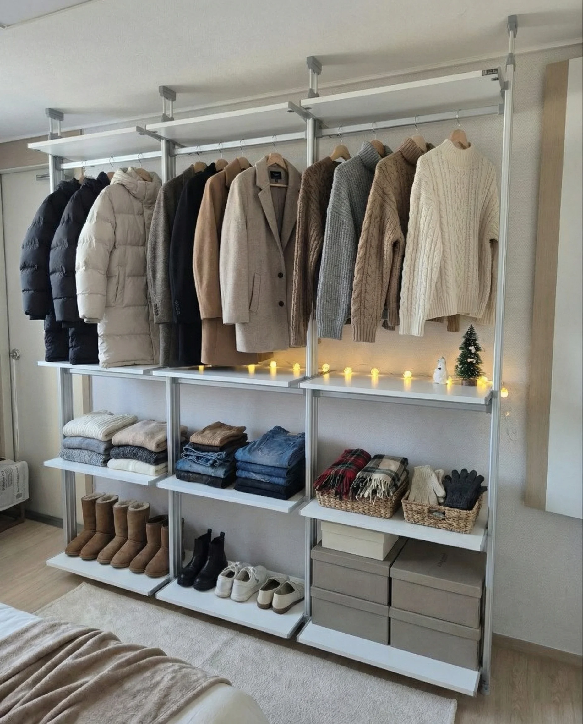 ✔️ 높이를 활용해 상단에 비시즌 옷 보관