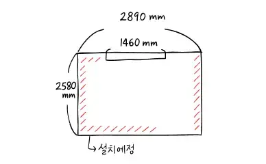 ✔️ 손그림 도면 - 공간 사이즈와 설치 할 구역 표시