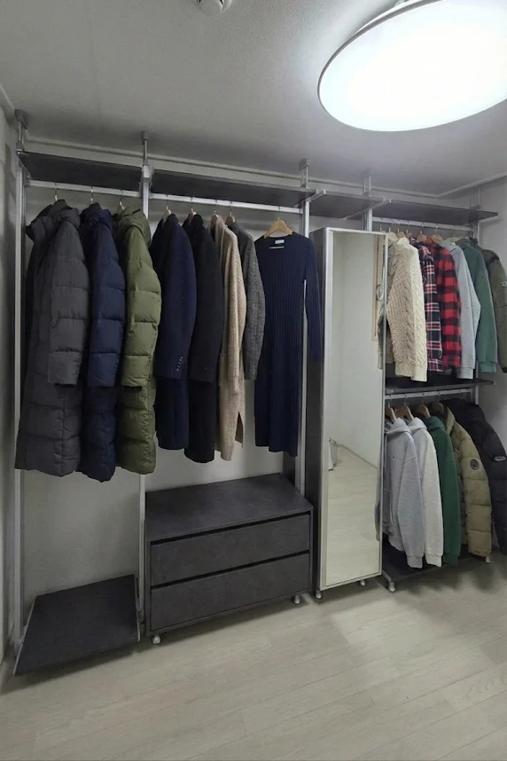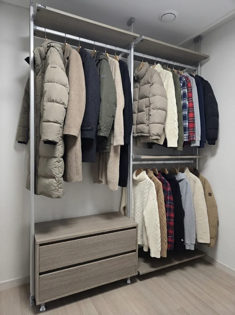 ✔️ 다른 쪽: 2단 옷봉 (숏패딩 + 일상복)