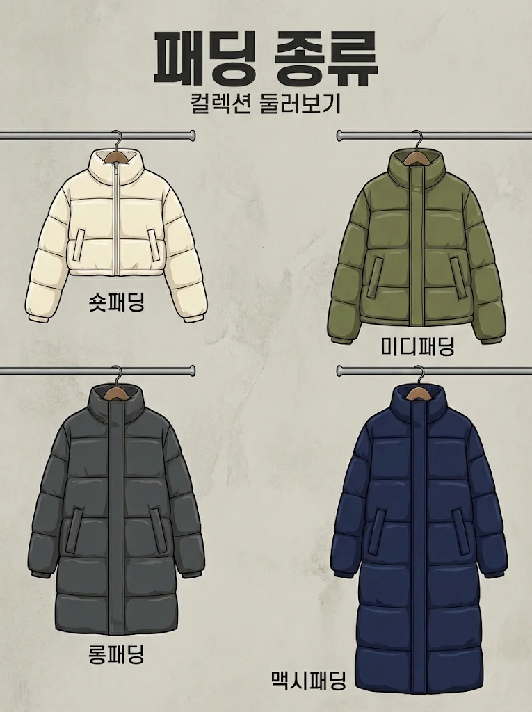 패딩은 길이에 따라 크게 4가지로 나눌 수 있어요.